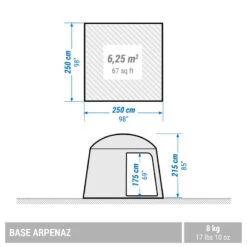 Tente bleue pour 2 personnes avec des dimensions de 120x200x100 cm