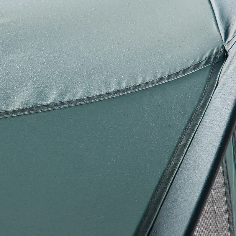 Notre équipe de passionnés a conçu cet abri 4 personnes pour vous isoler du sol, vous abriter du soleil, du vent ou d’une fine pluie.Partagez un moment en famille en pleine nature, cet abri protège du soleil (UPF 50+), se monte et se démonte facilement. Autoportant, il convient à tous types de terrain, et est facile à orienter.