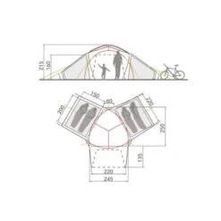 Le double-toit ventilé sur le séjour permet d’aérer et de limiter la condensation à l’intérieur de votre tente. Des trappes de ventilations hautes sont également placées à l’arrière de la tente ainsi que des moustiquaires hautes sur la porte et au fond de la chambre.