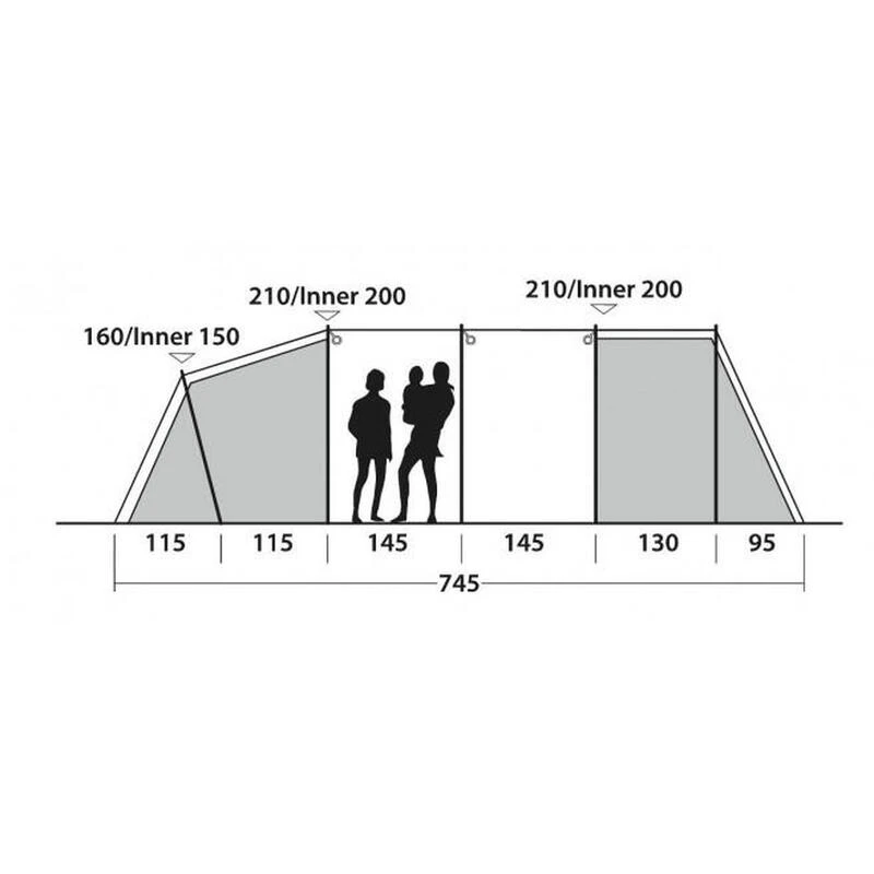 La tente de camping Outwell Westwood 8 en polyester est composée de 4 chambres pouvant accueillir 8 personnes.
